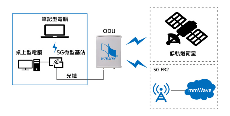 驊陞發明專利的單饋入雙極化天線架構,實現毫米波(mmWave)陣列天線的高增益、窄波束特性,加速5G FR2的佈署。強化戶外ODU(Outdoor Unit,數位微波收發信機)高增益天線設計,對接低軌道衛星與5G毫米波基站的訊號,2021年第1季已有訂單需求。攜手集團旗下光纖事業部,進軍固定無線接入(FWA)市場,提供5G有線網路的周邊元件,完整的元件產品鏈,如圖1所示,並已為6G產品超前佈署。