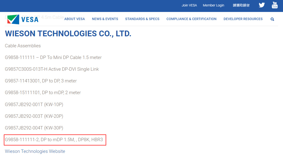 Wieson’s DP cable has been passed through rigorous test (DP 1.4 HBR3 Specification), it can reliably support 5K or 8K monitors, as well as high-performance 4K monitors, and is approved by VESA(https://vesa.org/).