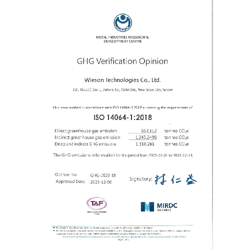 Wieson Technologies has obtained ISO14064-1 Greenhouse Gas Verification Statement